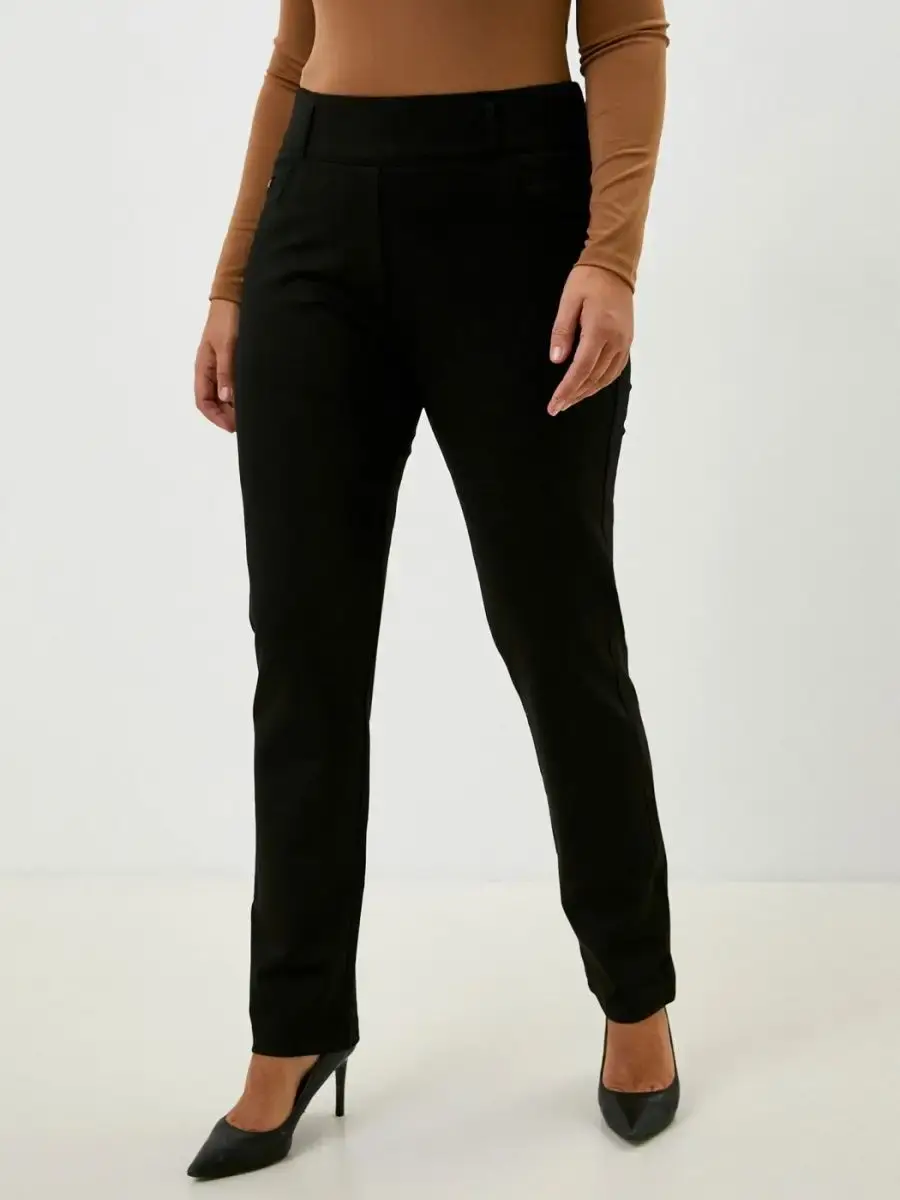 Брюки женские классические черные. Прямые трикотажные не зауженные на резинке,без карманов средней посадки отлично подходят на любой тип фигуры,скрывая все недостатки в любом возрасте. Отлично подойдут для девушек и женщин невысокого, среднего роста. Имея универсальный крой подойдут для работы в офисе, под костюм и для беременных женщин.Брюки легкие,качественные и отшиваются из плотной дышащей премиум ткани,за счет чего подходят на лето,весну,осень и зимние условия.