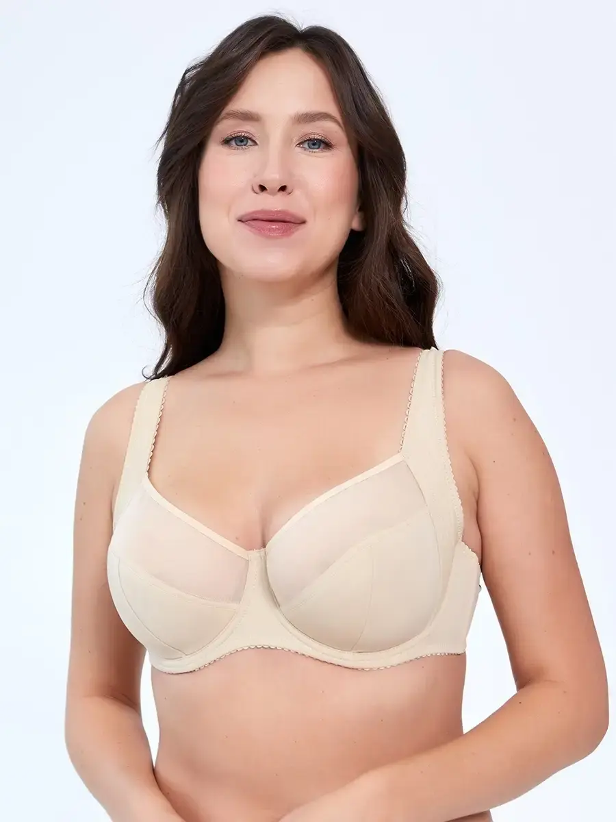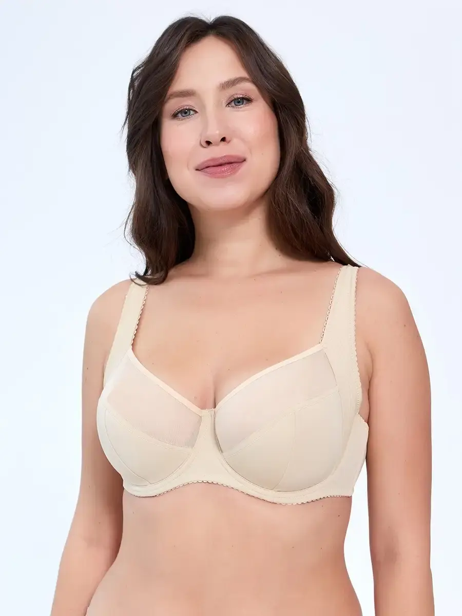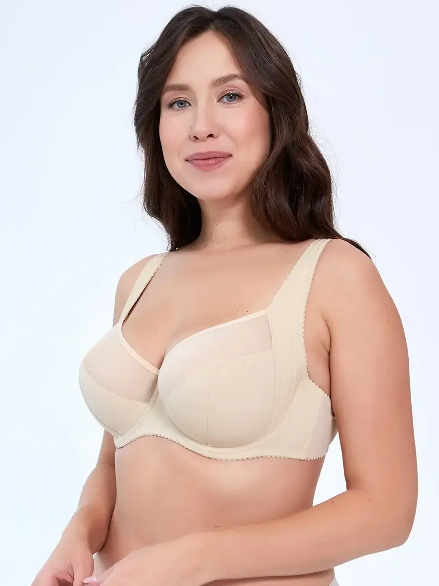 Бюстгальтер с мягкими чашками на косточках , на плотных бретельках. Широкий пояс на спине, двойная ткань пояса бюстгальтера. Верхний слой бюстгальтера чашечки выполнен из тонкой эластичной ткани, дублированным хлопковой подкладкой с прослойкой из поролона. Бюстгальтер минимайзер это не просто корректирующее белье, это модель бюстгальтера, которая правильно распределит нагрузку на плечи и позвоночник.Это нижнее белье, относится к бюстгальтерам сильной поддержки , в них даже можно заниматься спортом. Приобретая белье, ориентируйтесь на основной цвет вашей одежды: для белых и светлых блузок больше подходят минимайзеры белого, бежевого и телесного цвета. Для темных блузок насыщенные черные, синие цвета. Идеальным дополнением к бюстгальтеру будет блузка с арт . 1136316 или корсет арт 16360200 / бюстгальтер / нижнее белье / бюстгальтер с косточкой / размер бюстгальтера / купить бюстгальтер / большой бюстгальтер / утягивающий / Надя Пискун.