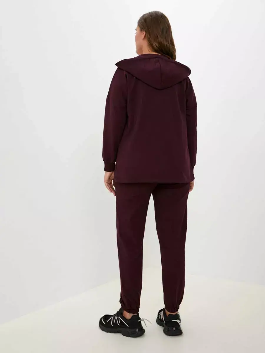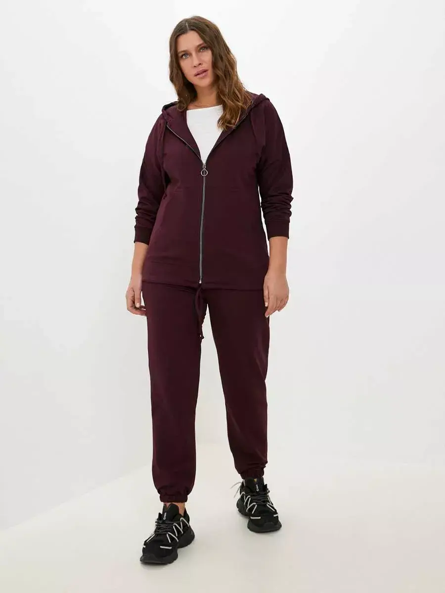 Женский спортивный костюм - это универсальная повседневная одежда, удобная для носки на каждый день. Комплект - двойка состоит из свободного покроя худи с капюшоном на молнии, манжетами на рукавах и спущенным плечом и брюк - джоггеров прямого кроя с классической посадкой на талии, поясом на резинке, прорезными карманами по бокам и резинка на штанинах. Минималистичный , на молнии, но очень красивый, нарядный костюм прекрасно подходит для повседневной носки, занятий спортом, туризма и активного отдыха. Стильный однотонный костюм из хлопка прекрасно подходит для прогулок с ребенком на детской площадки или в парке, ходьбы по магазинам с подругами.