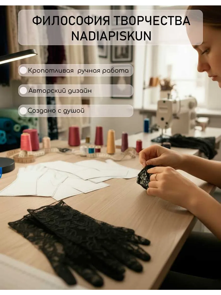 Митенки –стильный аксессуар для современной женщины. Идеальное решение для создания элегантного образа на любое мероприятие, сочетают в себе изысканность и практичность, а также обладают неповторимым дизайном и высоким качеством. Наши митенки доступны в разных цветах и цветовых оттенках на любой выбор и вкус, и прекрасно впишутся в любой образ, чтобы удовлетворить вкусы каждой женщины. Кружево, которое мы используем для пошива митенок-это кружево премиум класса из Италии, Франции, отшиваются заботливо в нашей прекрасной мастерской с любовью для покупателей. Покупайте митенки и будьте всегда в центре внимания. Митенки будут идеальным и практичным подарком для женщины, девушки, подруге, маме. У вас остались вопросы? С удовольствием ответим.