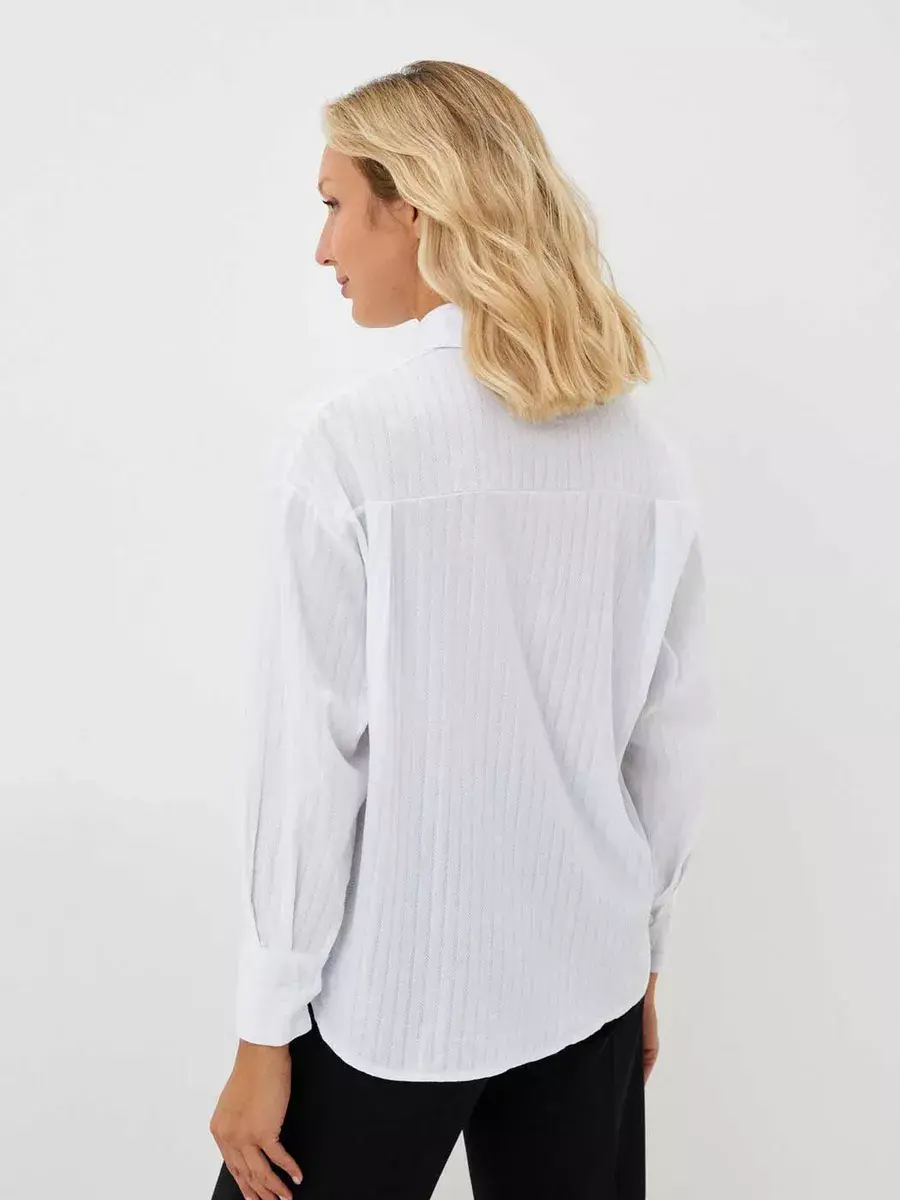 Рубашка женская классического прямого кроя от Nadia Piskun. Сшита из мягкого, гладкого хлопка, приятного к телу. Блузка из хлопка интересного плетения на ощупь как шелковая или атласная рубашка, но держит форму, более плотная, не просвечивает и легко утюжится. Цвет насыщенный белый, без оттенков. Рубашка женская хлопок прямая с длинным рукавом подойдет для девушек с ростом до 175 см. Для любительниц оверсайз посадки рекомендуем выбирать на размер, два больше. Базовая блуза дополнит любой образ: офисный, праздничный или нарядный летний. Белая рубаха может стать элементом школьной формы для девочки подростка. Хлопковая рубашка женская также может стать частью медицинской униформы. Рубашка из хлопка прекрасно подойдет к экзамену, на 1 сентября в школу, университет или на выпускной.
