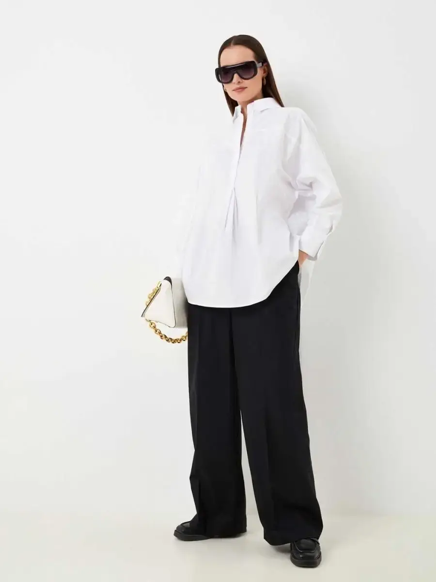 Рубашка женская оверсайз– это универсальный предмет гардероба девушки: одновременно модная и деловая одежда в офис для женщин. Белая и черная рубашка считается эталоном стиля. Рубашка подходит под любой стиль одежды в любое время года. Блузка с воротником офисный стиль – это хлопковая рубашка женская удлиненная, которая может использоваться как блузка школьная для девочки или блузка на каждый день для женщины. Рубашка oversize женская представлена в цветах: белый и черный. Рубашка удлиненная женская из категории новинки женская одежда является незаменимым атрибутом любого гардероба, ведь рубашка оверсайз подходит под любой тип фигуры.
