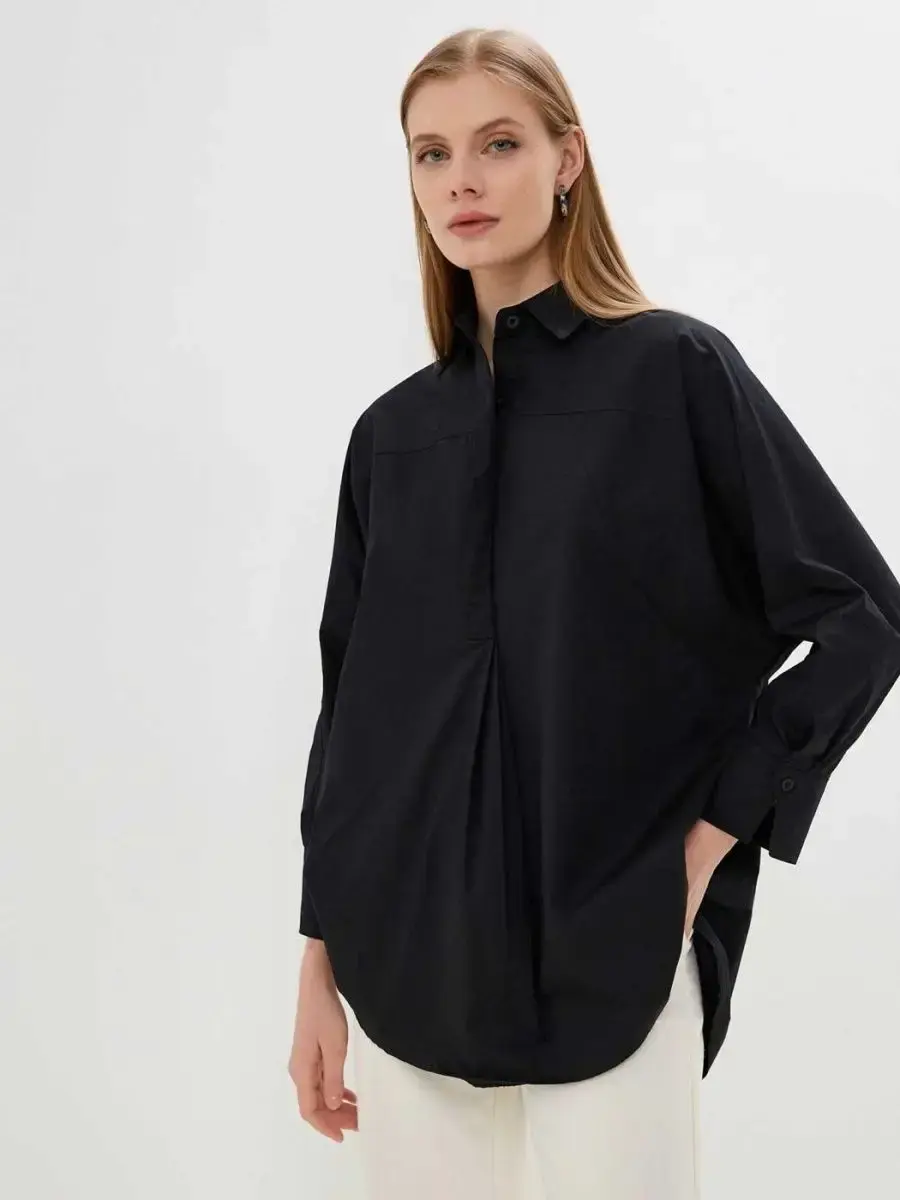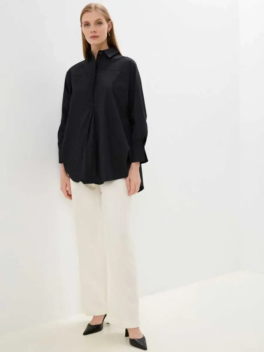Рубашка женская оверсайз– это универсальный предмет гардероба девушки: одновременно модная и деловая одежда в офис для женщин. Белая и черная рубашка считается эталоном стиля. Рубашка подходит под любой стиль одежды в любое время года. Блузка с воротником офисный стиль – это хлопковая рубашка женская удлиненная, которая может использоваться как блузка школьная для девочки или блузка на каждый день для женщины. Рубашка oversize женская представлена в цветах: белый и черный. Рубашка удлиненная женская из категории новинки женская одежда является незаменимым атрибутом любого гардероба, ведь рубашка оверсайз подходит под любой тип фигуры.
