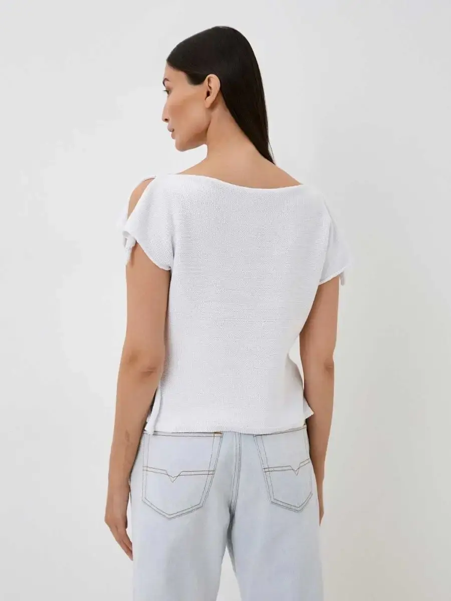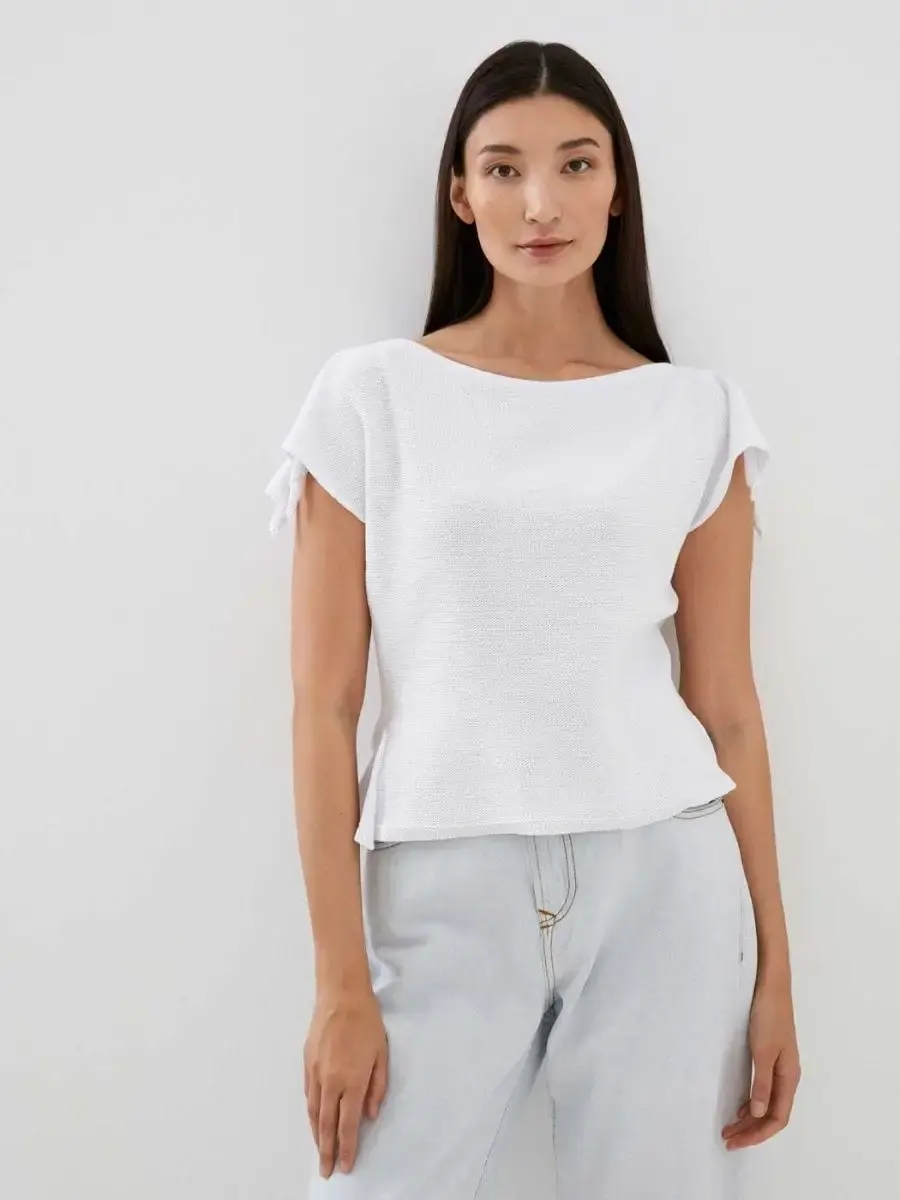 Вязаный женский топ в составе хлопок не колется. Натуральный состав хорошо пропускает воздух и отводит лишнее тепло. В нём будет комфортно и не жарко. Базовый хлопковый топ подходит для офиса и работы. Его можно использовать для дома и носить как как уютную одежду для дома. Топ имеет удобную посадку. Топик не короткий, и не укороченный имеет вырез лодочкой, который элегантно и эффектно подчеркивает изгибы линии плеч и ключиц. Однотонный топ без рисунка и принта идеально впишется в деловой и вечерний, домашний, школьный стиль. Рекомендуем комбинировать топ с классическими брюками, палаццо и лосинами, а также юбками. Проверяйте товар при получении, мы не можем контролировать качество упаковки и аккуратность примерки от предыдущего покупателя, а также не в силах повлиять на срок и качество доставки, пожалуйста не снижайте за это оценку, а напишите в службу поддержки. Цена может меняться в период акций.